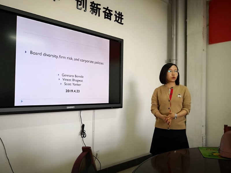 2019年4月23日下午,必威西汉姆联学院学术论坛由贺亚楠博士向全院师生讲解2016年发表在JFE上的一篇论文《Board diversity,firm risk and corporate policies》。文章背景是源于近年来公司董事会的多样性受到了政治和媒体的广泛关注,但此前研究大多数侧重多样性的某个方面。作者观察表明,近年来,公司董事会多样性,一方面导致决策趋于温和,但没有系统的证据表明这些影响对公司董事会的运作产生了影响;另一方面会加剧冲突并扰乱董事会决策过程,导致公司风险和波动性更高而不是更低。文章推测,更大的董事会多样性应该导致更稳定的结果。董事会多样性是否会影响公司波动性,是文章分析的核心研究问题。文章构建了董事会多元化指数,检验多元化对公司风险的影响,发现更高的多元化程度会带来更低的波动性及更好的业绩表现;但同时多元化对研发投入增加的影响也很显著。众所周知研发投入会提高企业风险,这与其他结果相矛盾。为此文章进一步检验发现多元化也会同时增加研发产出,增加研发产出会降低企业风险。此外,贺老师对文章中所采用的工具变量进行了详细介绍,增加了学院师生对工具变量使用的知识面。