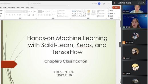 在研究方法分享环节,张玉凤博士介绍了机器学习分类估计和预测,包括检测数据集、训练二分类器、分类器性能评估等。龚帧皓老师对一些关键知识点,如二分类器、混淆矩阵、准确率与召回率、ROC曲线等进行解释,并针对路苗和刘红艳同学提出的问题进行了解答。随后宋陆涛硕士从数据来源、图谱分析等方面介绍了文本挖掘方法如何在财务领域中应用。续慧泓副院长指出通过五次机器学习的分享,不仅让同学们掌握了机器学习的基本原理,更重要的是让大家学会了一种新的研究方法;机器学习作为人工智能里比较活跃的内容,在财务管理方面也得到了大量的应用,希望大家通过此次学习,能主动把机器学习、文本挖掘等智能算法和会计、财务管理等场景有效地融合在一起。