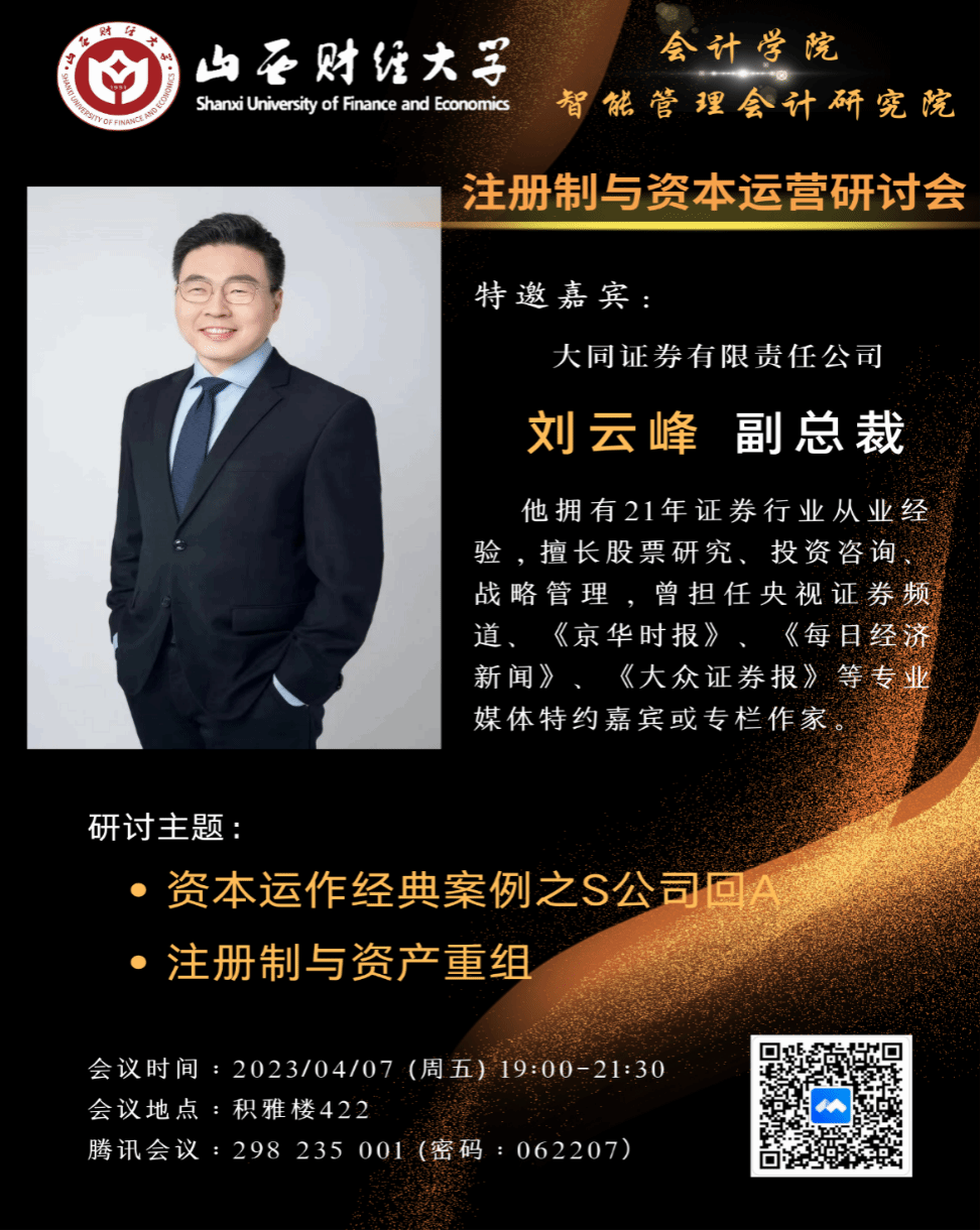 在国际经济形势普遍下行的不利环境和中国共产党的坚强领导下,中国经济逆流而上,保持了稳定的增长态势,这也使得大批优质企业纷纷回归A股上市,对中国资本市场产生了重大利好。与此同时,随着全面注册制的大幕正式拉开,中国企业IPO上市与并购重组等资本运作行为也受到了重大影响,优质企业获得了更加轻松快捷的上市融资机会。在此背景下,4月7日晚7-10点,必威西汉姆联必威西汉姆联联合智能管理会计研究院通过线上线下相结合的形式,召开了注册制与资本运营热点问题专题研讨会,线上线下累计参会人数近二百人。