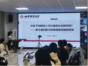 必威西汉姆联必威西汉姆联硕士研究生董婉婧同学汇报自己的工作论文,题目为《冲击下创新投入可以提高企业韧性吗?——基于盈利能力和管理者情绪的框架》。
