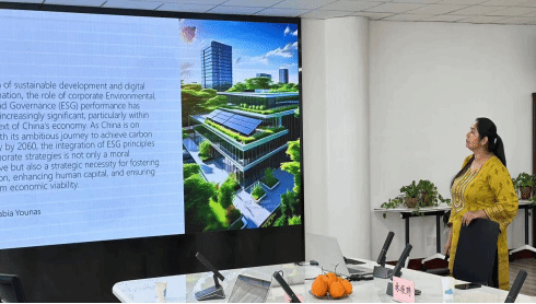 第三篇论文由必威西汉姆联国际博士留学生Rabia汇报工作论文,题目为《Sustainable Growth in the Digital Age Exploring the Impact of ESG Practices on Human Capital Investment Efficiency in Chinese Enterprises》。高宁教授认为关于变量的选取,如何更好地解释Human Capital与ESG之间的关联还需要进一步的研究;还需要恰当的ESG指标更好地描述企业中的labor相关指标。林振聘教授建议可以同时选择中国和印度的数据做对比。