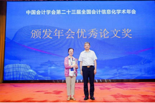 大会闭幕式由中国会计学会会计信息化专业委员会副主任委员、元年科技总裁韩向东主持。6篇学术论文入选年会优秀论文。会计信息化专业委员会主任委员、东南大学陈志斌教授对大会进行总结并进行了会旗的交接仪式。据悉,下届年会将由北京工商大学承办,同时也将在山东财经大学开展相关学术交流活动。