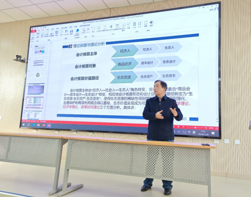 8日上午在修德楼阶梯教室,袁教授以《中国自主环境资源会计研究:基于概念、历史与未来的解读》为题,为必威西汉姆联骨干教师、硕士及博士生做专题报告。环境资源会计作为会计学的一个重要分支,专注于记录、分析和报告与环境资源相关的财务活动,涵盖了自然资源的财务价值评估及环境资源的合理利用、管理、控制及保护等方面的会计活动。环境会计是以经济可持续发展战略目标为指导,运用会计学的基本理论与方法,对企业和其他组织对环境产生影响的经济活动进行核算与监督,为企业内部决策提供信息支持的一种管理信息系统。袁教授介绍了会计核算主体、对象和价值路径的转变,强调了会计核算中经济效益、社会效益和生态效益的兼顾;影响环境履约责任的重要因素,例如企业文化、经营观念、战略规划等。袁教授介绍了资源环境会计研究的目标宗旨、逻辑主线及研究前景,强调了深化生态文明思想、构建具有中国特色的环境资源会计体系的重要性。他指出未来研究将聚焦于构建中国化环境会计理论体系、制定环境会计指南、探索生态补偿价值实现机制等战略目标。在成本控制和信息披露方面,袁教授详细讲解了环境完全成本指标、环境大收入指标、环保专用基金指标和环境所有者权益指标等关键指标,这些指标对于企业环保策略的制定和环保活动的经济效益评估具有重要意义。