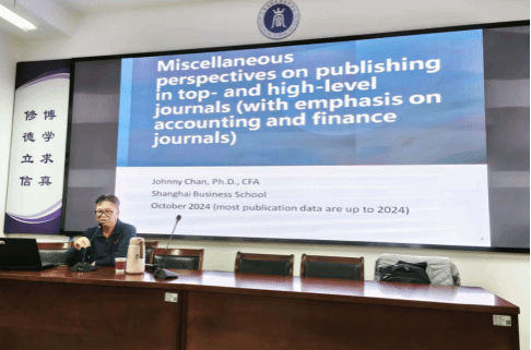 2024年11月19日下午4点,原美国西肯塔基大学终身教授、现上海商学院会计与金融学特聘教授Kam C. Chan(中文名:陈锦全)为我院师生带来一场精彩的学术讲座。本次学术活动由会计学教研室承办,李颖副院长主持。陈锦全教授曾获美国国务院富布赖特学者奖,他的研究领域涉及绿色金融、首次公开募股、公司治理及分析师行为等,迄今在《Management Science》《Journal of International Business Studies》《Contemporary Accounting Research》等国际期刊发表学术论文300余篇,审稿超过500次,是全球金融教育领域的顶尖学者之一。