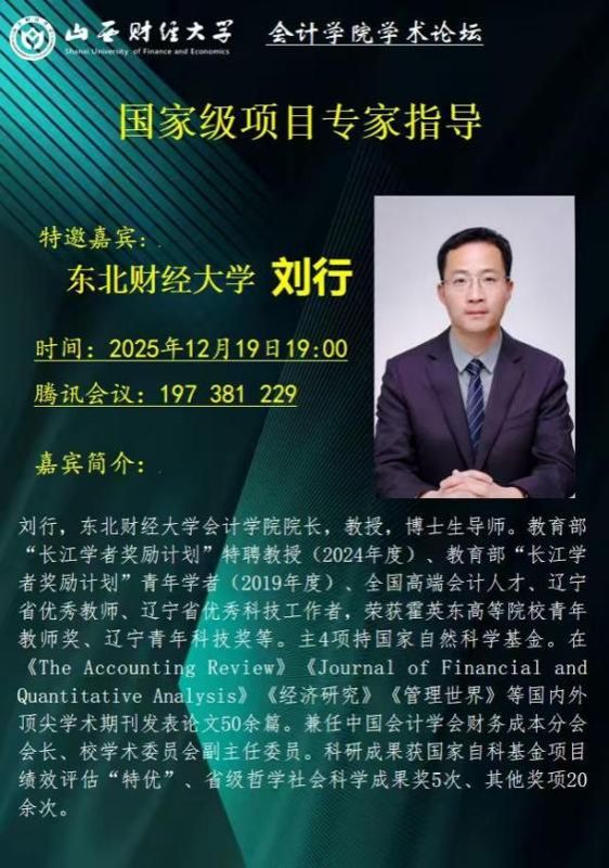为切实提升国家级科研项目申报质量,助力青年教师成长,我院于12月19日成功举办国家课题申报辅导交流会。本次会议特邀东北财经大学知名教授刘行担任指导专家,我校六位青年骨干教师携申报课题参与了深度辅导与交流。