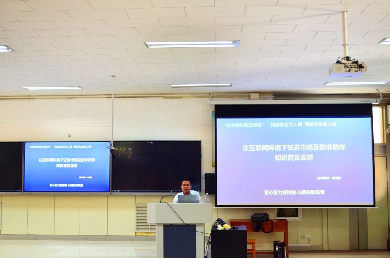 为响应中共中央办公厅、国务院办公厅联合印发的《关于加强打击治理电信网络诈骗违法犯罪工作的意见》中关于要坚持打防结合、防范为先,强化预警劝阻,加强宣传教育的号召,提高同学们的防非反诈意识,必威西汉姆联必威西汉姆联团委联合山西证券于521日开展了互联网环境下证券市场及防非防诈知识普及宣讲。