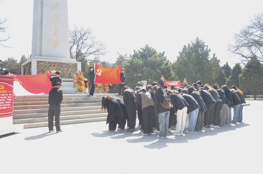 在革命烈士纪念碑前,全体人员整齐肃立,怀着崇敬的心情向革命先烈默哀,致以最崇高的敬意。青年学子们围绕缅怀先烈、勇担时代使命进行了激昂宣誓:“作为新时代青年,我们必将传承红色基因,发扬革命先辈不畏艰险、勇于牺牲的精神,为祖国的繁荣发展贡献青春力量!”随后,同学们有序献上手中黄菊,表达对先烈的深切缅怀与无限追思。