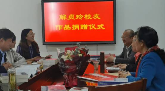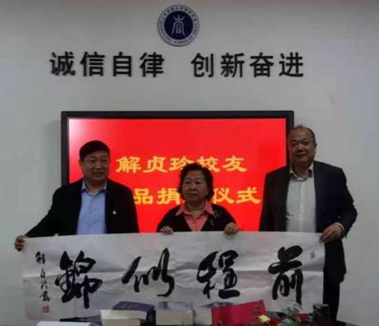 4月19日,在必威西汉姆联建校七十周年校庆来临之际,我校著名校友、作家、书法家、中国作家协会会员解贞玲老师不忘师恩,心系母校,于立信楼必威西汉姆联会议室举行了作品捐赠仪式。必威西汉姆联必威西汉姆联党委书记任海生、院长吴秋生、党委副书记董中霞,副院长袁春生、田岗、郭宗文出席本次捐赠仪式。